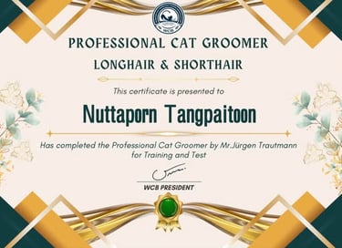 บริการอาบน้ำแมวประกวด สำหรับแมวที่เตรียมตัวขึ้นเวที หรือเจ้าของที่ต้องการดูแลน้องในระดับพรีเมียม บริการนี้ทางร้านได้รับการอบรมและรับรองโดย คุณ Juergen หนึ่งในกรรมการของ WCF (World Cat Federation) ซึ่งเป็นองค์กรประกวดแมวระดับโลก